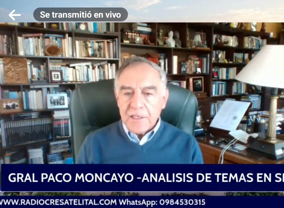 Quito. EL General Paco Moncayo, ex asambleísta y ex alcalde de Quito, en Teleamazonas, dio a conocer algunos conceptos sobre la actual situación del país. «El Ecuador vive un conflicto interno contra el crimen transnacional, a nuestro país lo han convertido en una plataforma para el negocio criminal de la droga» y agregó que «Nosotros vivimos un desdoblamiento del problema colombiano, si desaparecieran los sembrios de coca de Colombia y de Perú, que son los principales productores del mudo,nosotros viviríamos en perfecta paz»
