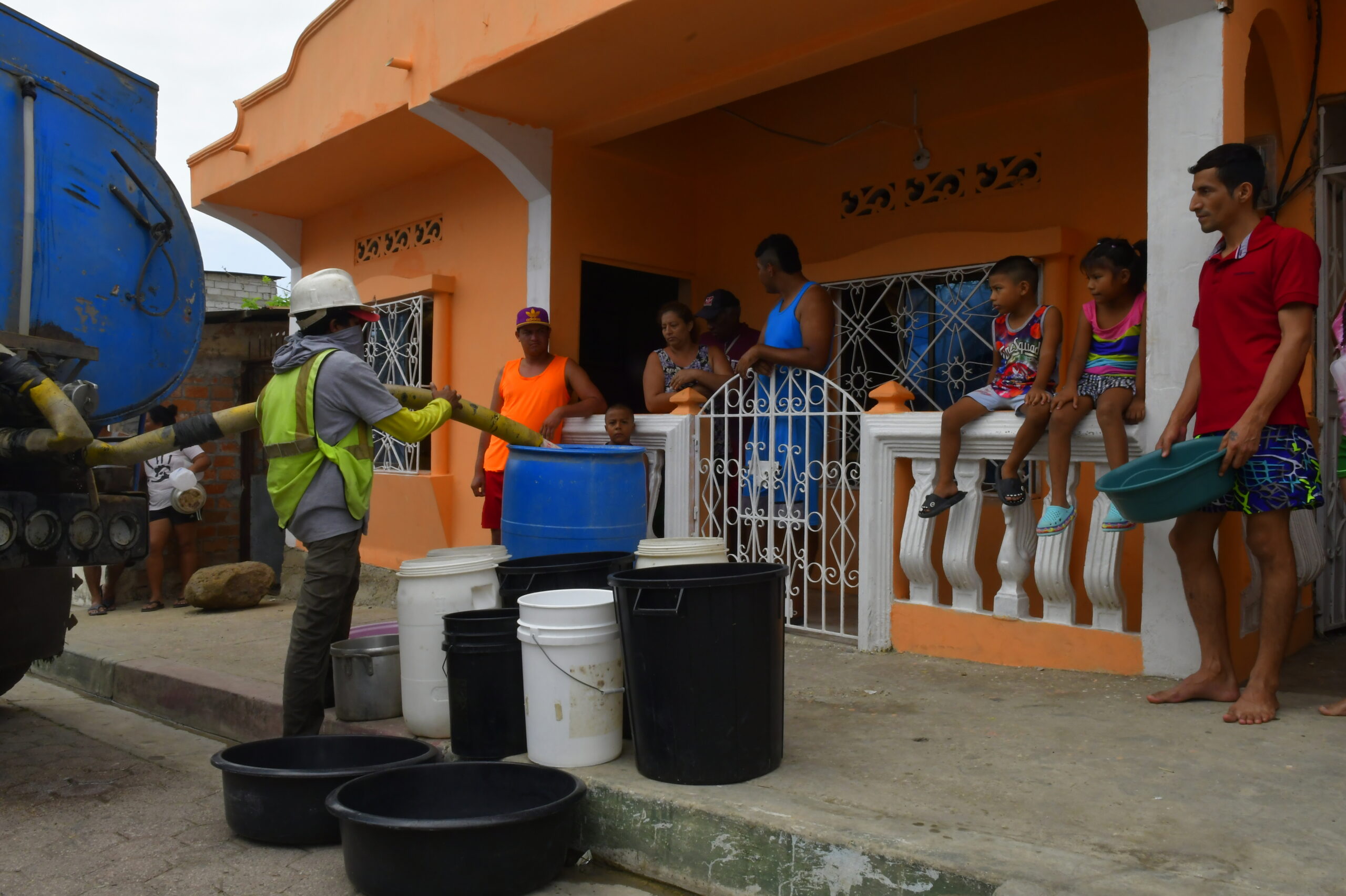 A más de los tanqueros, se han entregado en total 1.000 botellones de 20 litros, entre el sábado y domingo. Este beneficio, al igual que los tanqueros, benefician a 7.000 predios ubicados en Posorja.