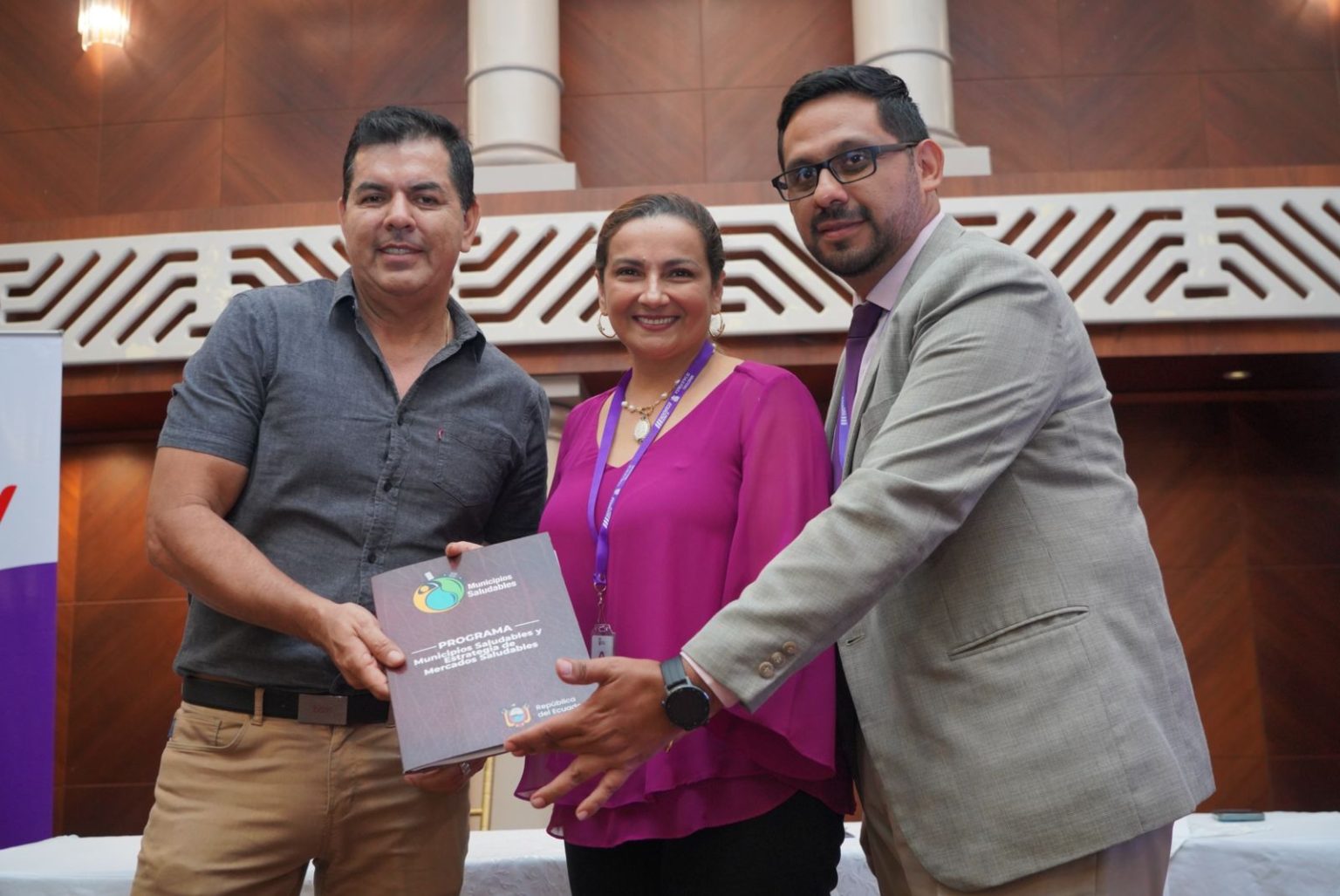 Machala.- Este 15 de febrero de 2024, la viceministra de Gobernanza del Ministerio de Salud Pública (MSP), Sara Tama, asistió en representación de la autoridad sanitaria, Franklin Encalada, a la firma de Carta de Intención de 14 municipios de la provincia de El Oro para adherirse al Programa Municipios Saludables y Estrategia Mercados Saludables, iniciativas impulsadas por esta cartera de Estado.