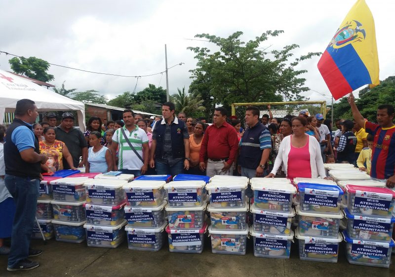 Quito.- El Secretario de Riesgos, Jorge Carrillo, en colaboración con el Gobernador de Los Ríos, Edison Valencia, el Prefecto Johnny Terán, la Alcaldesa Joel Melo y el Presidente del GAD Parroquial Guare, Erick Peñafiel, se unieron para entregar Asistencia Humanitaria a 144 familias afectadas por inundaciones en los recintos Cancagua, Los Tintos y La Estacada, ubicados en el cantón Baba.