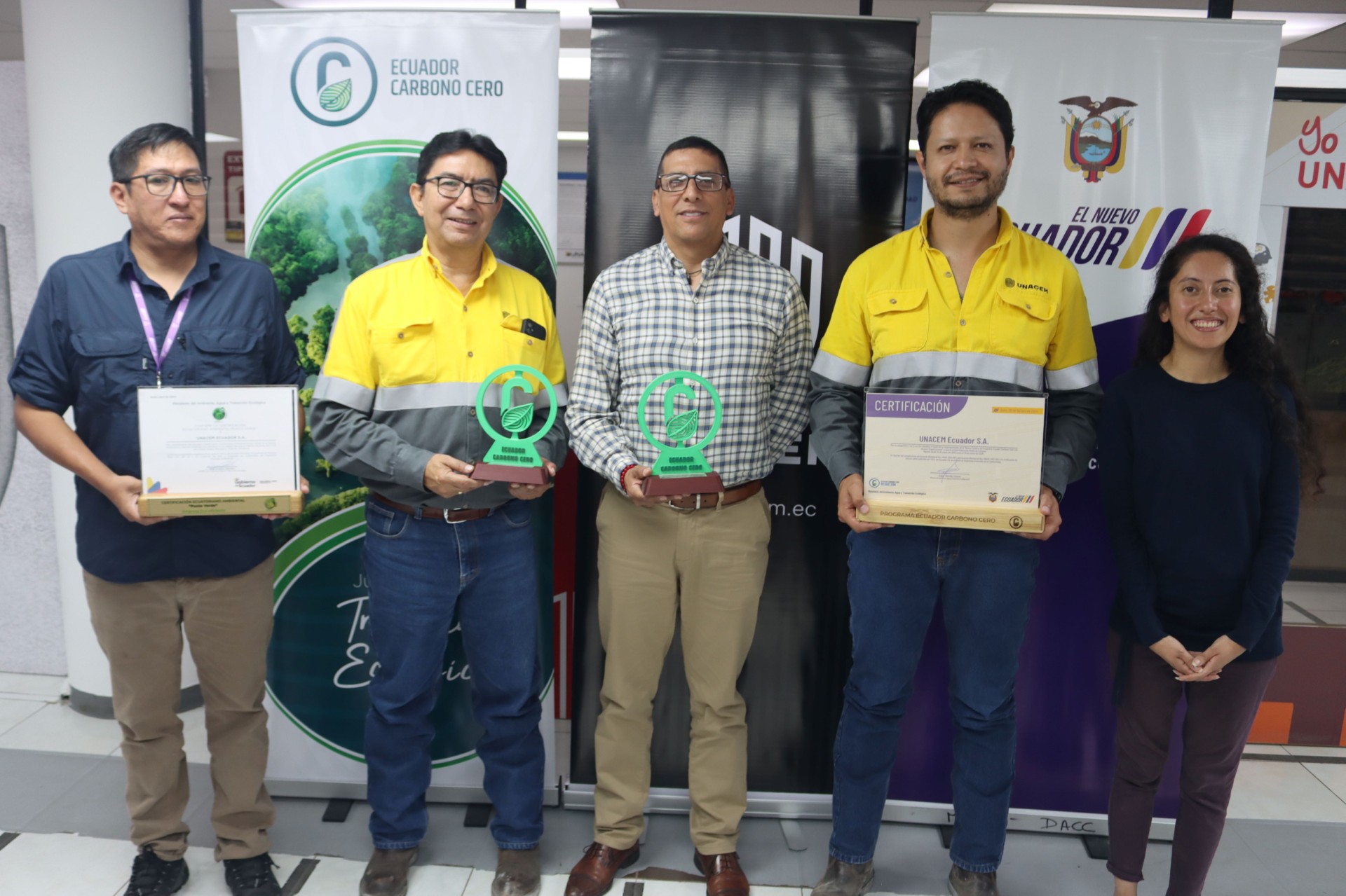 Imbabura.- UNACEM Ecuador, empresa industrial comprometida con la construcción de un mundo sostenible mediante sus soluciones integrales de cemento y hormigón, obtuvo la Certificación Reducción de Carbono, por parte del Ministerio del Ambiente, Agua y Transición Ecológica (MAATE). En una visita a su planta industrial en Otavalo, el Subsecretario de Cambio Climático Subrogante de la entidad pública, Diego Quishpe, expresó sus felicitaciones y reconoció la responsabilidad ambiental y compromiso social que proyecta UNACEM Ecuador.