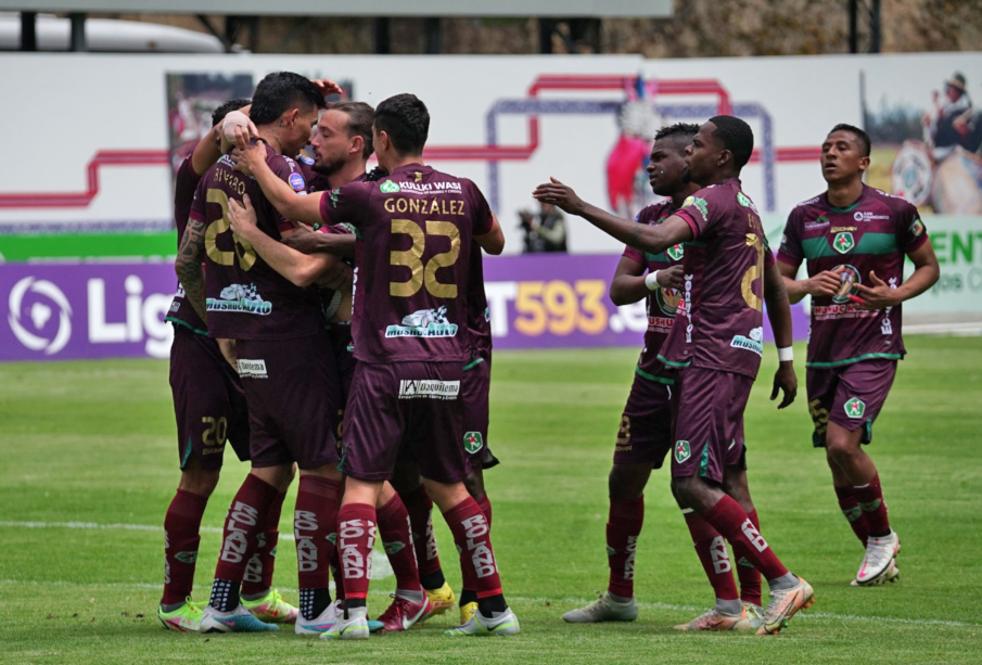 Latacunga.- El volante colombiano Steven Tapiero anota la única conquista de este partido que le da un triunfo a Mushuc Runa sobre Barcelona por la mínima diferencia en La Cocha de Latacunga ante unos 8000 espectadores.
