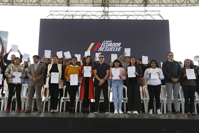 “Todas estas becas son la puerta al cambio, son la oportunidad de ayudar a sus familias, son la oportunidad de crecer personal y profesionalmente, de superarse; pero sobre todo son la oportunidad de cambiar el pasado y apostar por un futuro, uno nuevo para el Ecuador”, recalcó el Presidente.