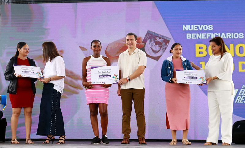 Al finalizar la actividad, el Presidente Noboa resaltó que el Bono 1.000 Días es una luz de apoyo, un “compromiso firme y decidido con el bienestar de mujeres gestantes, niñas y niños menores de dos años”, siguiendo así el legado de su madre Anabella Azin, quien por más de dos décadas ha llevado sus brigadas médicas a todos los rincones del país para combatir a la