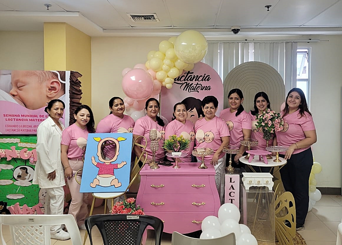 El Área de Ginecología organizó un evento para promover la Lactancia Materna, para lo cual Sandra Pacheco, responsable del servicio de Ginecología y Obstetricia explicó qué es la lactancia materna, mientras que Enma Cueva, especialista en lactancia materna, destacó su importancia. Además, se realizaron actividades lúdicas para las mamás lactantes hospitalizadas.