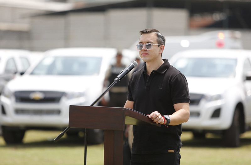 Además, el presidente Noboa señaló que mientras entrega equipamiento a las fuerzas del orden, sus detractores políticos refutan las acciones de su gobierno. Por lo que rechazó los cuestionamientos que provienen de “grupos políticos liderados por cabecillas que están en La Roca, por corrupción y ligados al crimen organizado”.