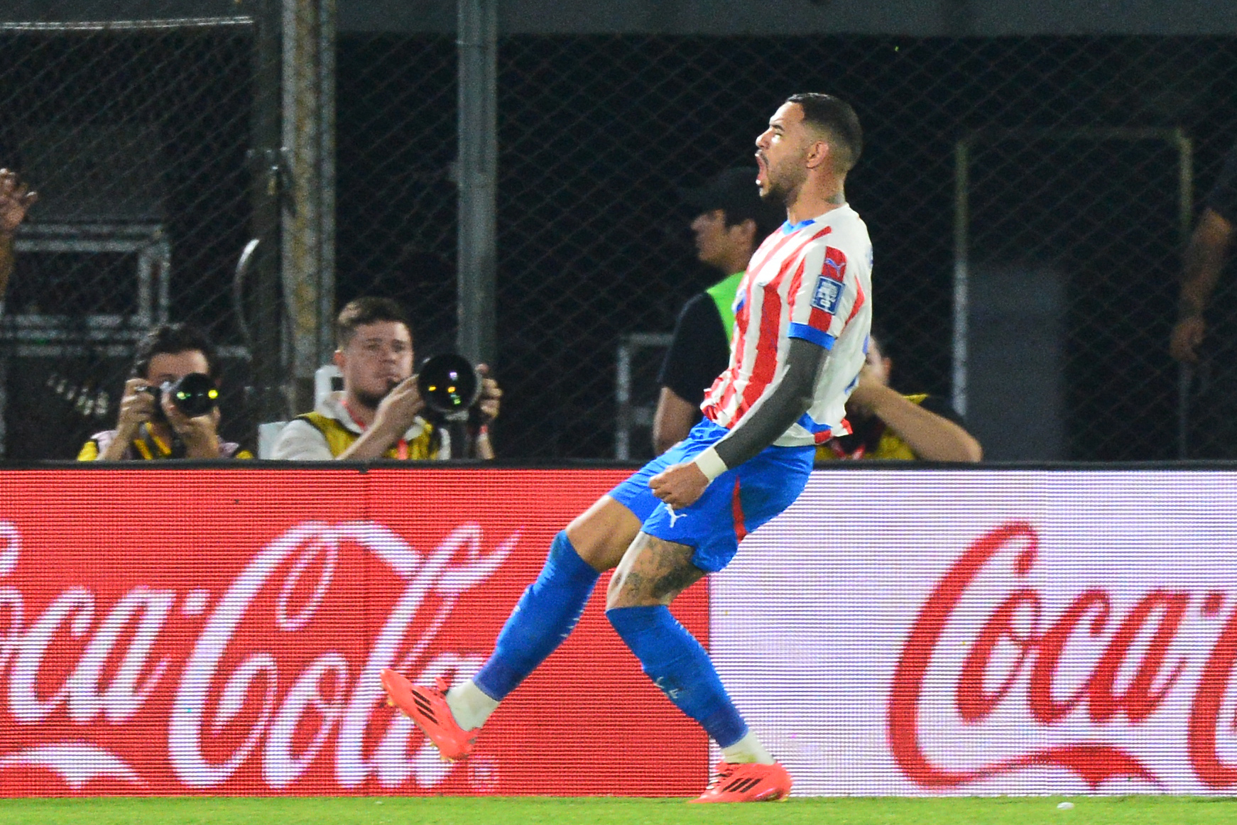 El primero lo convirtió tras conectar un centro al corazón del área anticipándose a sus dos marcadores para empujar el balón a la red y el segundo al capturar un cabezazo de Julio Enciso que envió al fondo del arco venezolano también de cabeza.