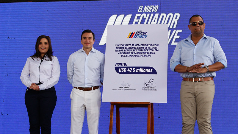 Esmeraldas.- El trabajo articulado entre el Ejecutivo y los Gobiernos Autónomos Descentralizados (GAD) potencian la gestión territorial en beneficio de la ciudadanía. Este viernes 8 de noviembre, el gobierno del presidente Daniel Noboa Azin suscribió un convenio entre EP Petroecuador y la Alcaldía de Esmeraldas. Con ello, la estatal petrolera transferirá USD 47.5 millones al municipio para obras de pavimentación en 25 barrios, beneficiando potencialmente a 62.500 esmeraldeños.