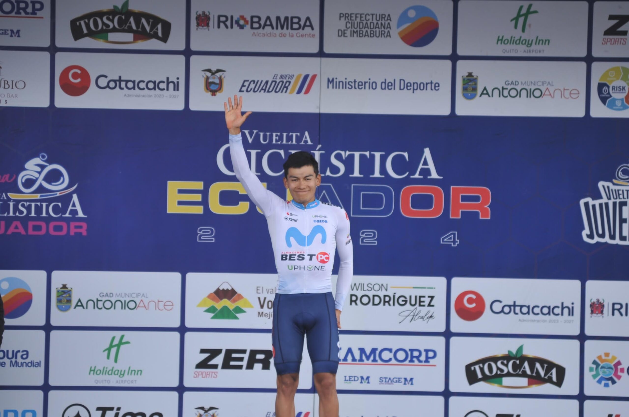 Riobamba.- El ciclista del Movistar Best PC, Brayan Obando defendió con jerarquía su camiseta de líder de la clasificación general de la Vuelta al Ecuador, en el circuito urbano cumplido esta mañana en Riobamba, por la cuarta etapa del giro al país.
