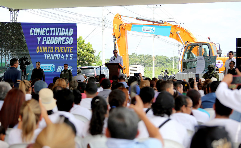 Yaguachi.- El Gobierno Nacional a través del Ministerio de Transporte y Obras Públicas (MTOP) anunció el inicio de los trabajos de construcción del Quinto Puente de Guayaquil. El presidente de la República, Daniel Noboa Azin, participó en el acto formal, al que también asistieron otras autoridades nacionales y locales.