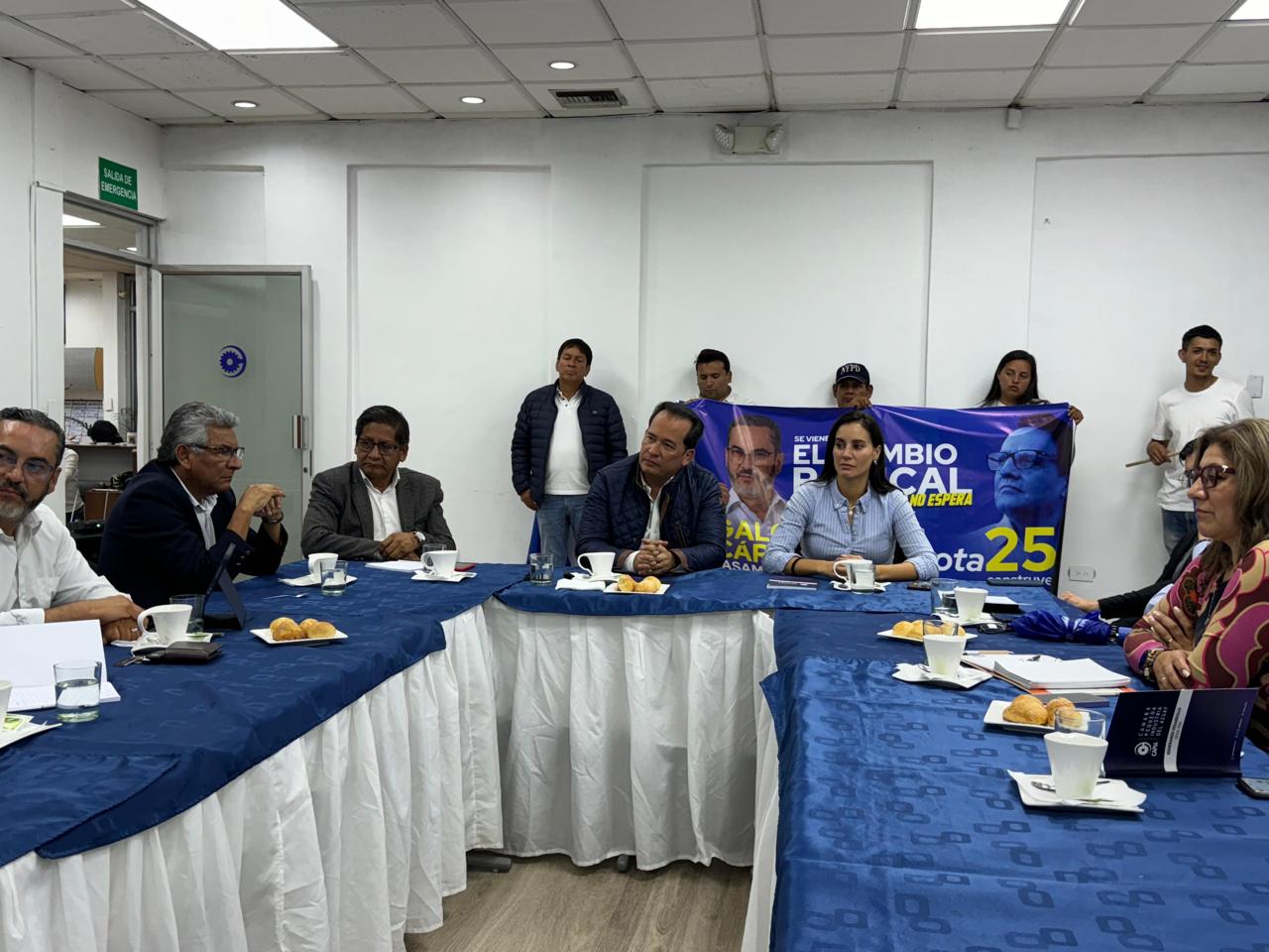 Cuenca.- Continuando con la visita a Cuenca este martes 7 de enero, el binomio presidencial por Construye, Henry Cucalón y Carla Larrea, mantuvo reuniones con el Sindicato de Choferes Profesionales del Azuay y la Cámara de la Pequeña Industria del Azuay.