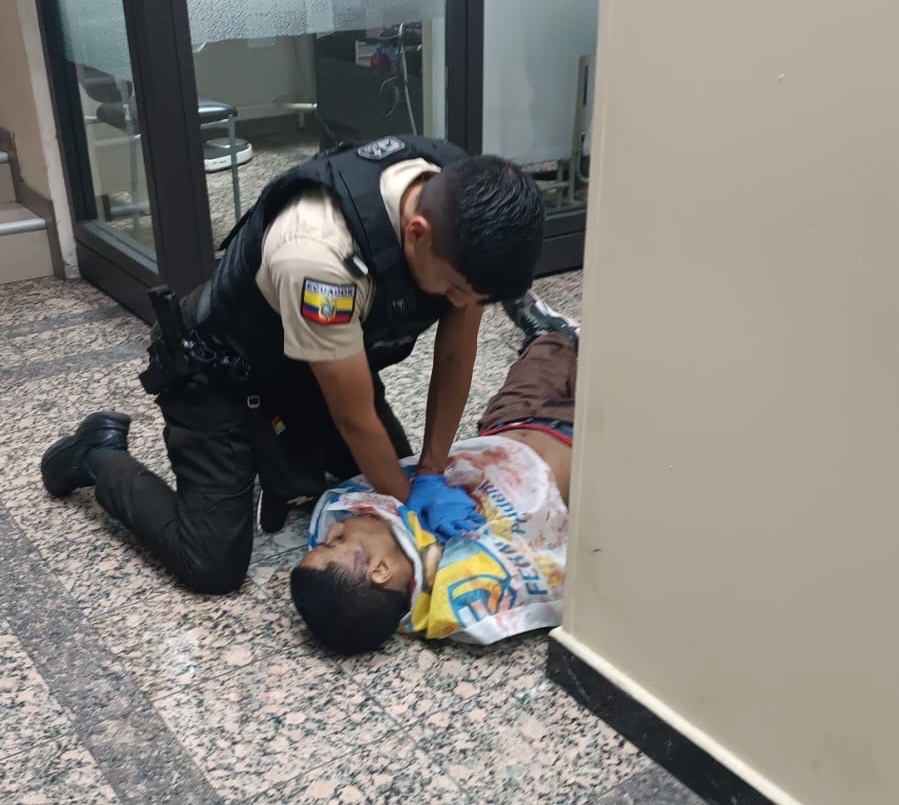 Quito.- Un video que consiguió diario La Hora, muestra como llegó mal herido y cargado por dos policías el presunto delincuente que participó en el asesinato de Fernando Villavicencio, hasta la Unidad de Flagrancia de la Fiscalía.
