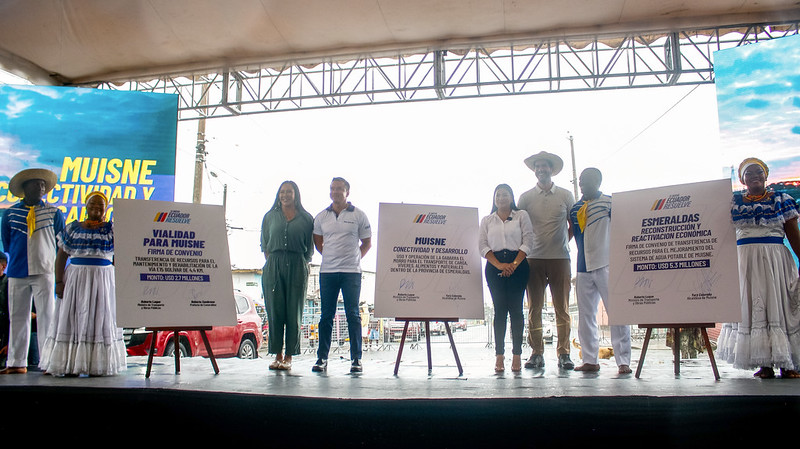 Durante el evento, también el Ministerio de Transporte y Obras Públicas (MTOP) anunció la entrega al GAD Muisne de USD 5.3 millones para la repotenciación del sistema de agua potable, en el marco de la Reconstrucción y Reactivación Productiva de Manabí y Esmeraldas. Así como USD 2.7 millones que serán destinados al mantenimiento y rehabilitación de la vía E15 – Bolívar, con una extensión de 4.4 kilómetros, para que sea ejecutado por la Prefectura de Esmeraldas.