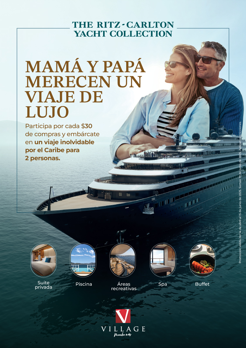 Guayaquil.- Village reconoce el esfuerzo de cada madre y padre, es por eso que anuncia el inicio de su campaña “MAMÁ Y PAPÁ MERECEN UN VIAJE DE LUJO” en el que premia a mamá y papá con un crucero de lujo al máximo en altamar TODO INCLUIDO, un regalo perfecto en esta temporada.