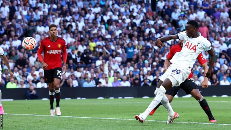 El equipo local golpeó la madera dos veces en la primera mitad a través de un desvío de Pedro Porro y Luke Shaw, mientras que Antony golpeó el poste del United, el nuevo portero de los Spurs, Guglielmo Vicario, atajó magníficamente a Casemiro y Bruno Fernandes de alguna manera cabeceó desviado de una portería abierta en la primera mitad. .