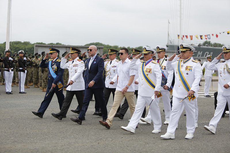 Guayaquil. – El Presidente de la República, Daniel Noboa Azin, participó este 5 de junio en la ceremonia militar de ascenso honorífico e imposición de mando del nuevo Comandante General de la Armada del Ecuador, almirante Pablo Caicedo Salvador. El acto se desarrolló en la Base Naval Sur, con la presencia de autoridades nacionales y el alto mando de las Fuerzas Armadas (FF.AA.).