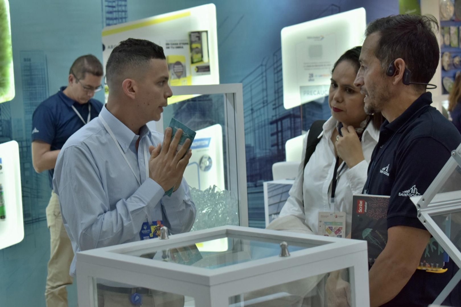 Durante la feria, Saint-Gobain destacó por sus más recientes innovaciones. Saint-Gobain Imptek (Ecuador) presentó “Fazband”, una innovadora banda acústica de doble faz adhesiva y asfáltica que aísla, fija e impermeabiliza, ideal para sistemas de construcción tanto liviana como tradicional. Por su parte, Saint-Gobain Vidrio Andino —que cuenta con la primera y única planta de fabricación de vidrio en Colombia— exhibió sus productos icónicos: PLANILUX® (vidrio incoloro), PARSOL® Gris (vidrio de color) y STADIP® (vidrio laminado incoloro y de color). Además, presentó el programa “RECICLO CON VIDRIO ANDINO”, enfocado en el cierre del ciclo de vida del producto para reducir el impacto ambiental. Saint-Gobain Fiberglass ISOVER, líder en soluciones de aislamiento, dio a conocer su renovado portafolio con propuestas integrales para mejorar el confort térmico y acústico en los espacios construidos.