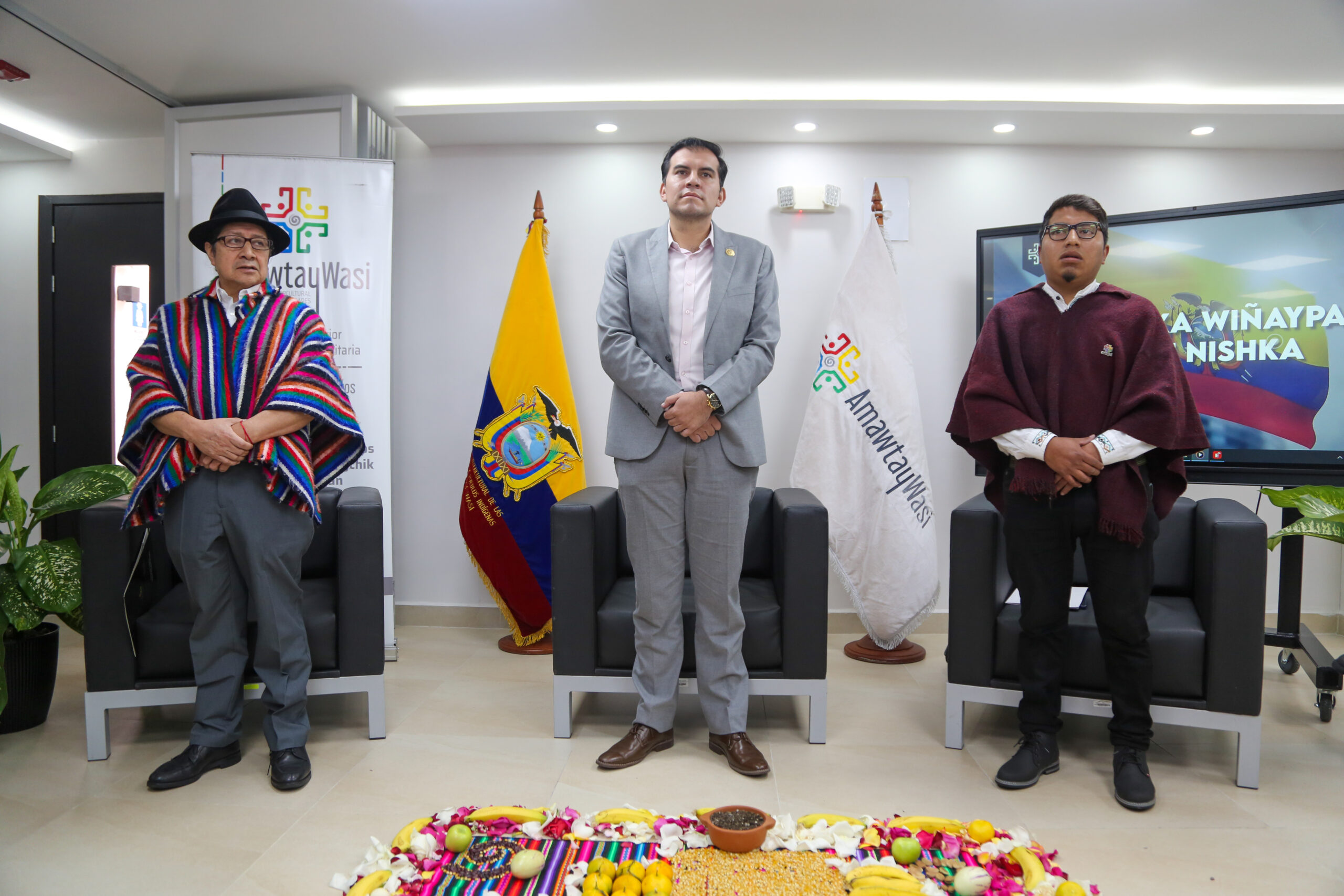 La entrega oficial de la donación de este terreno se hizo la mañana de este martes 10 de junio, durante la firma de un acuerdo interinstitucional que contó con la participación del ministro de Inclusión Económica y Social, Harold Burbano, el rector de la Universidad Intercultural Amawtay Wasi, Armando Muyolema, autoridades del MIES y estudiantes de esta universidad.