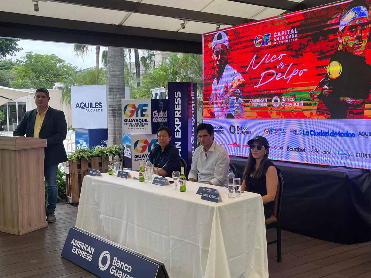 Durante la rueda de prensa la Torre de Tandil apareció en un video confirmando su presencia “Hola Nico, un gusto saludarte, hola Guayaquil, Ecuador, para contarles que voy a estar en Guayaquil el 19 de julio en un partido con Nico y haciendo otras actividades. Me da mucha ilusión volver a Ecuador, la última vez que estuve fue en el Challenger hace muchísimos años así que estoy muy emocionado de encontrarme con ustedes nuevamente y que tengamos unos días espectaculares” manifestó el argentino.