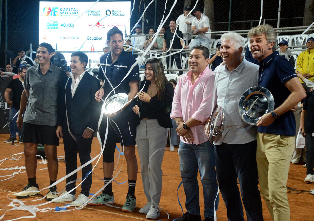 Tras el final del partido, cuando Lapentti dejó su tiro en la net, se realizó una muy emotiva ceremonia de premiación, en cancha estuvieron además de Juan Martín, Nicolás, Gustavo Kuerten y Andrés Gómez, la vicealcaldesa de Guayaquil, Tatiana Coronel, el director de deportes del Municipio de Guayaquil, Carlos Morán y el presidente ejecutivo del Banco Guayaquil, Guillermo Lasso Alcívar.