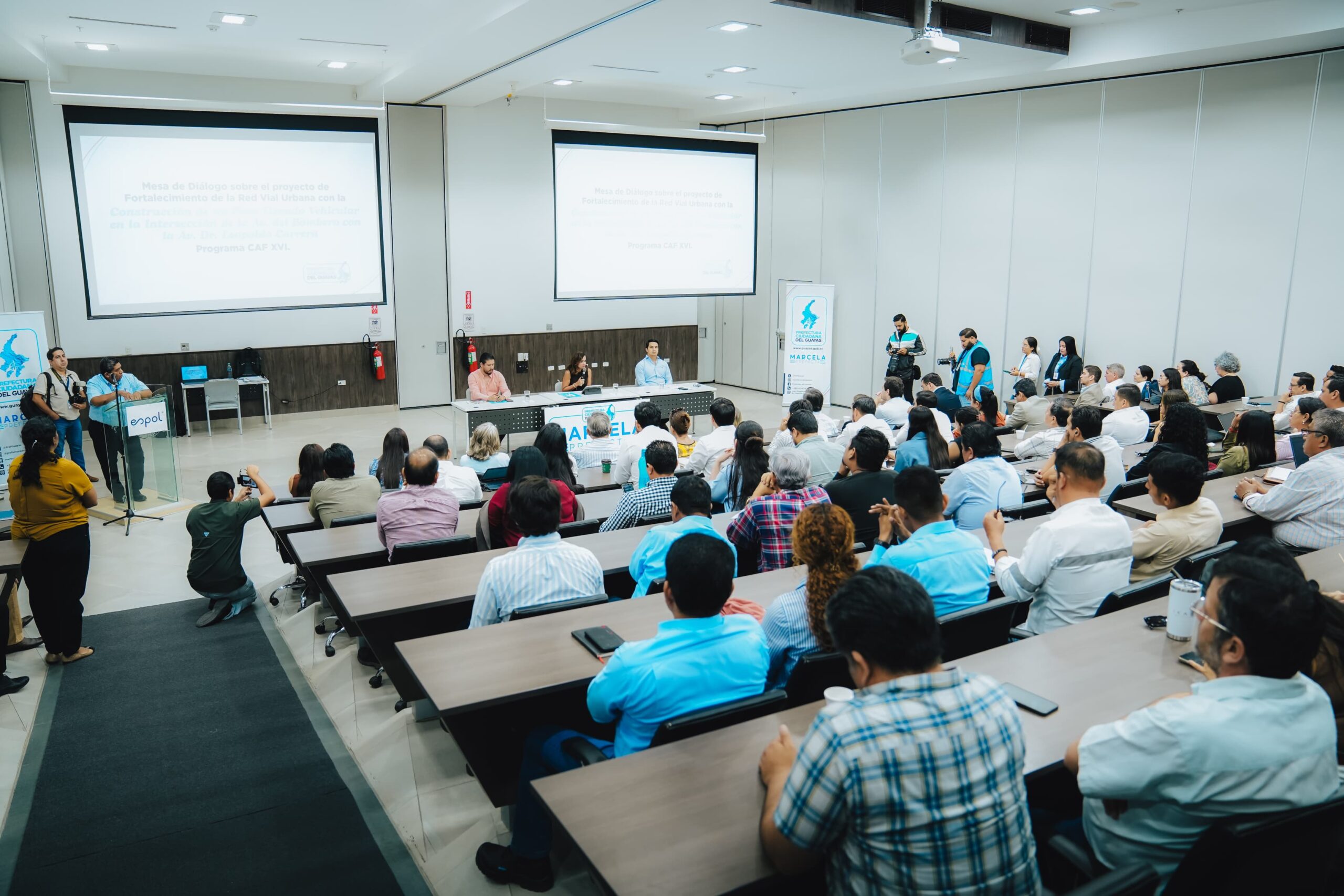 Más de 200 representantes de la zona de influencia de la obra participaron en la Mesa de Diálogo que se desarrolló en la Espol. A ellos se sumaron funcionarios de la Prefectura, Municipio de Guayaquil, delegados de universidades y del Colegio de Ingenieros Civiles.