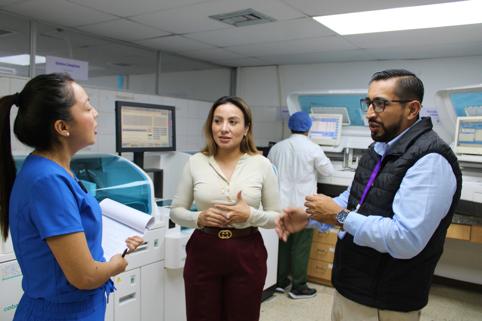 Franklin Satama, gerente del Hospital, informó a la autoridad sobre las acciones que se desarrollan para optimizar el flujo de pacientes en los servicios de emergencia y consulta externa, destacando la implementación de nuevas herramientas como las órdenes de exámenes de laboratorio clínico en línea. Este sistema permitirá que los usuarios, con solo presentar su cédula, puedan acceder a sus exámenes de manera más rápida, reduciendo tiempos de espera a menos de cinco minutos.