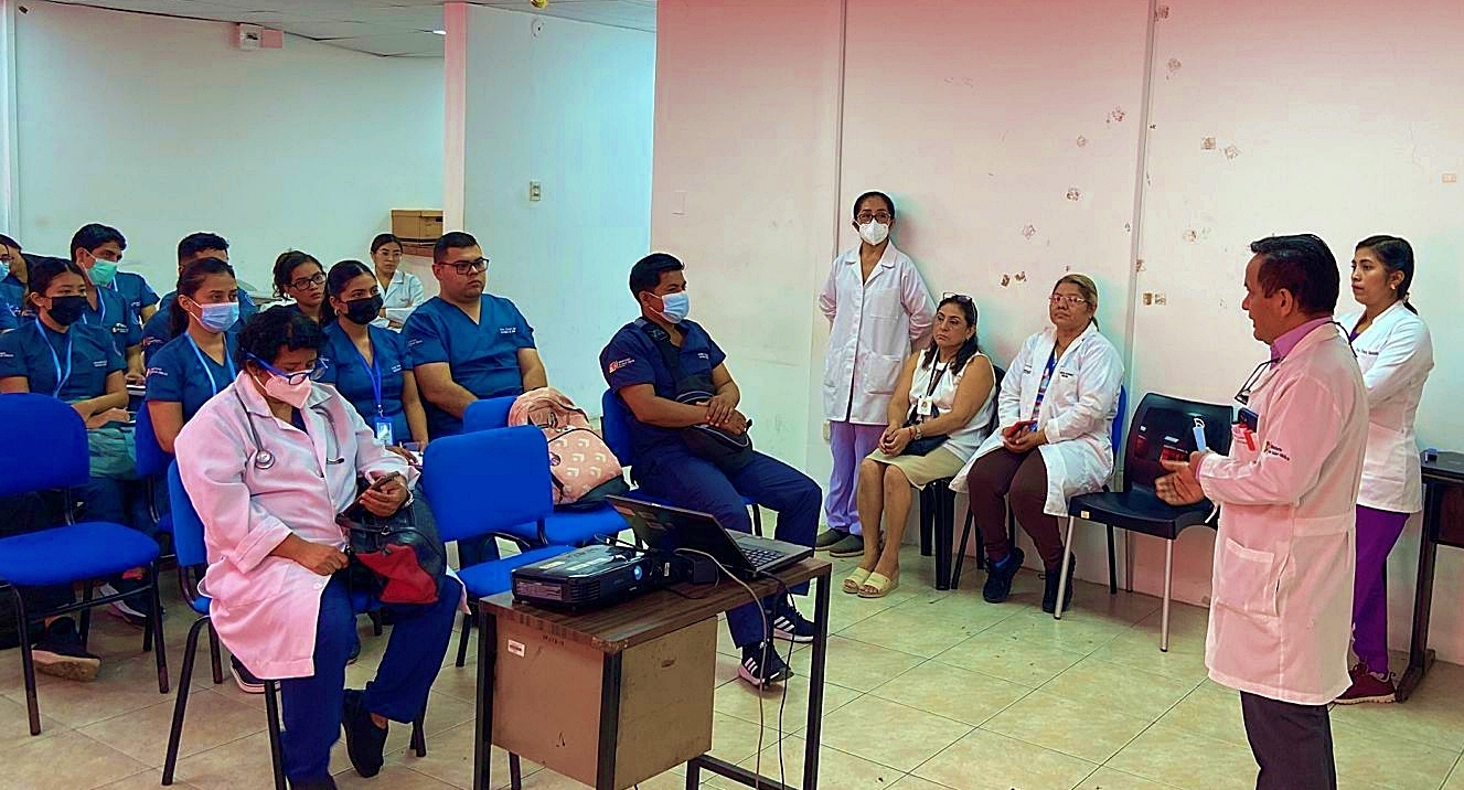 Código de ética, reglamento interno, clima laboral y primeros auxilios psicológicos, bioseguridad, manejo de historia clínica, manejo de aplicaciones informáticas, llenado de matriz de atenciones en emergencia, manejo de desechos hospitalarios, laboratorio clínico, tomas de muestras y transporte, vigilancia epidemiológica, manejo de documentación RPIS, son los temas abordados.