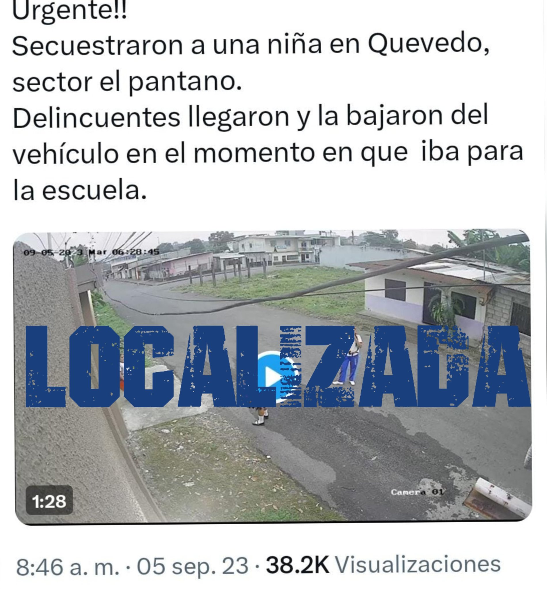 Menor fue secuestrada en #Quevedo. Antisociales cerraron el paso del vehículo en el que una niña se dirigía a la escuela junto a su madre y hermanas. Los secuestradores se bajaron fuertemente armados y con amenazas se la llevaron.
