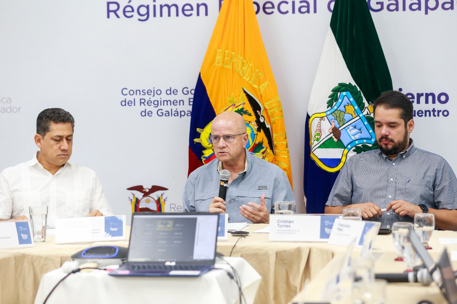 San Cristóbal, Galápagos. – Con la presencia del vicepresidente Alfredo Borrero Vega, ministros de Estado, los alcaldes de Isabela y Santa Cruz; y delegados de las diferentes mesas técnicas, se instaló la sesión del COE provincial convocada por el presidente del Consejo de Gobierno del Régimen Especial de Galápagos, Schubert Lombeida, para determinar acciones conjuntas de preparación y respuesta frente a la posible ocurrencia del Fenómeno El Niño Oscilación Sur (ENOS).