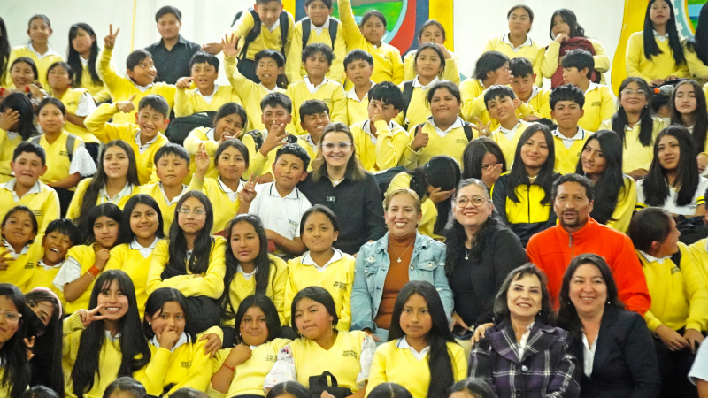 Asimismo, en la Unidad Educativa Miguel Egas Cabezas, ubicada en Peguche, se entregaron escritorios para docentes, kits deportivos y material didáctico, beneficiando directamente a 451 estudiantes y a la comunidad escolar.