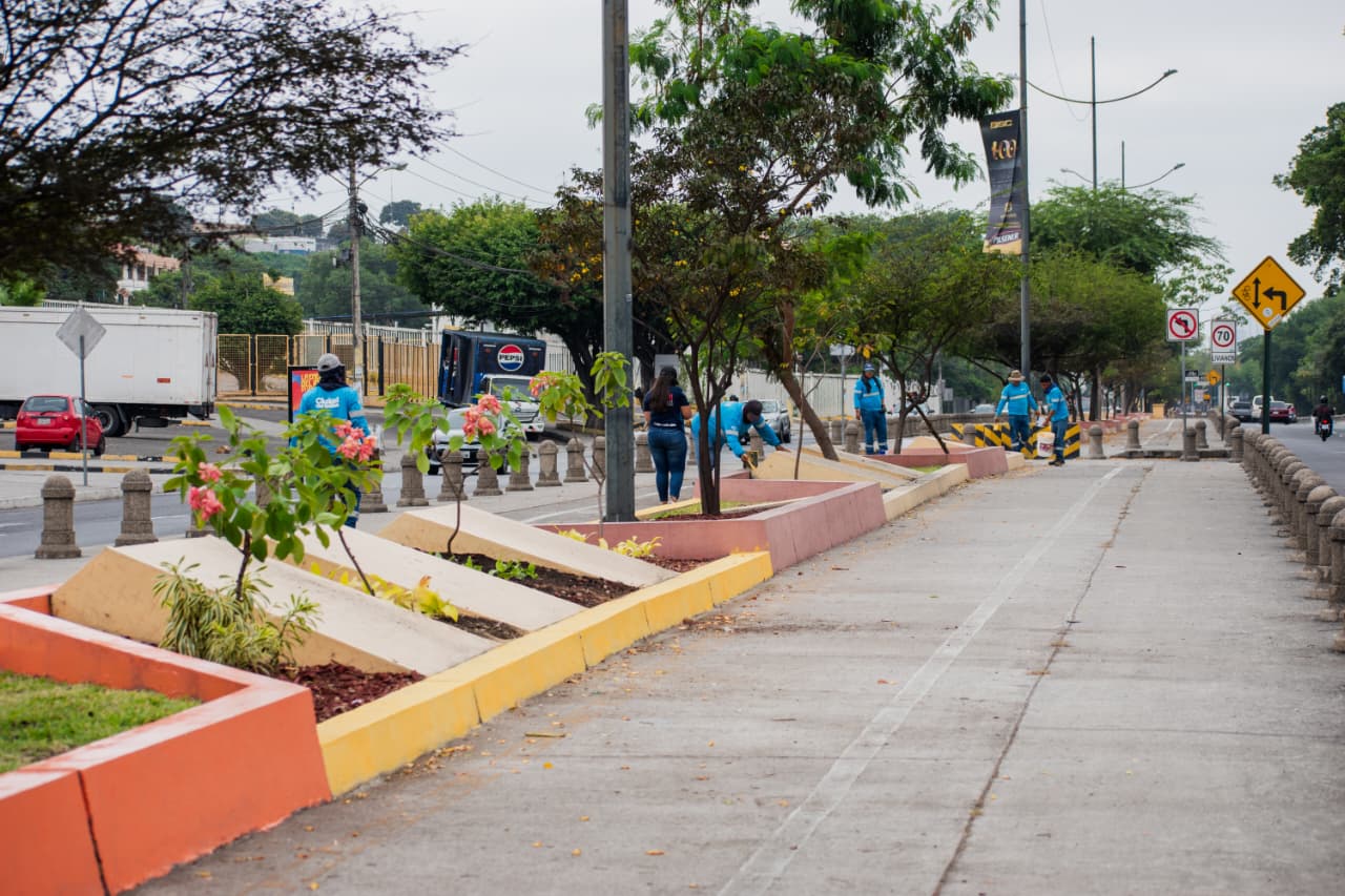 Guayaquil.- Con el propósito de mejorar la infraestructura urbana y embellecer el ornato de la ciudad, el Municipio de Guayaquil ejecuta un plan integral de mantenimiento de pintura en calles, avenidas, monumentos, parterres y aceras,