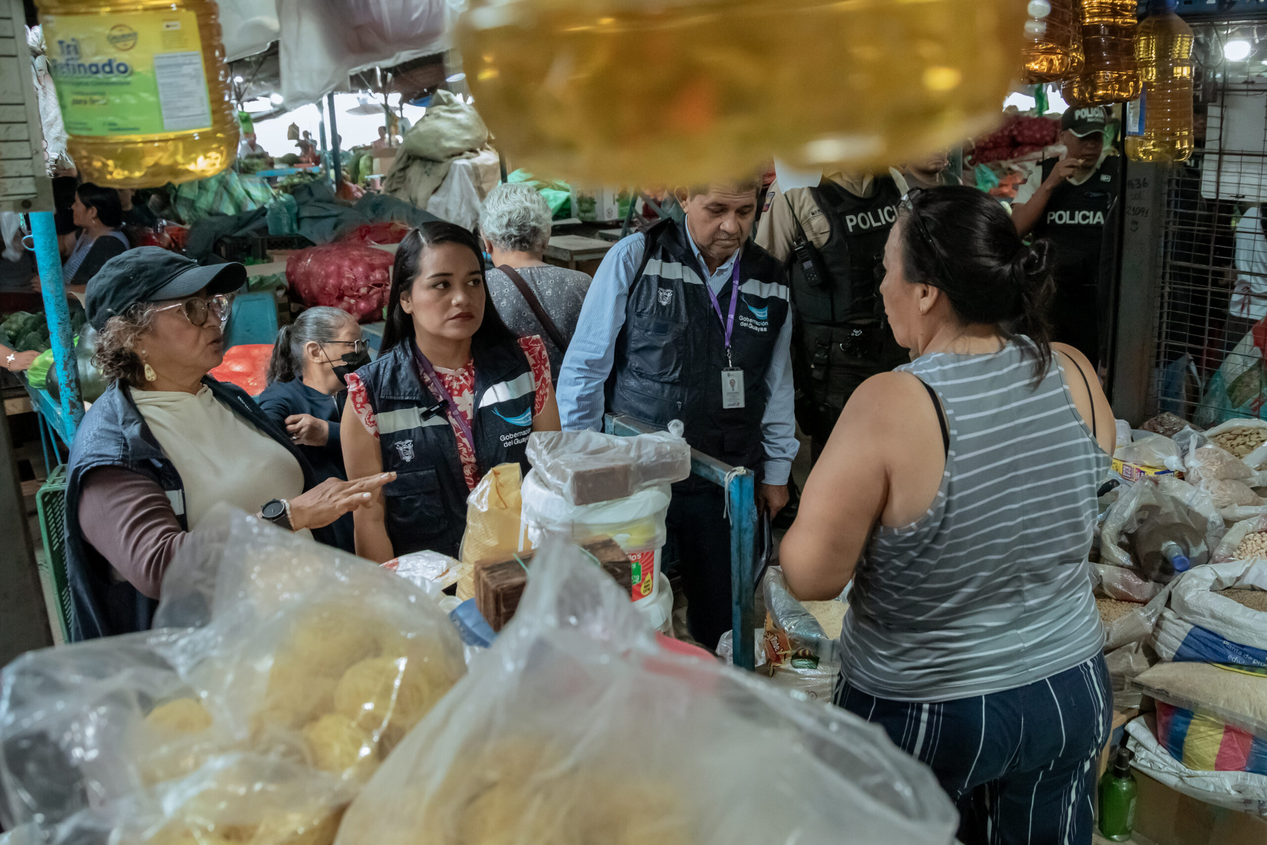 Guayaquil.- El Gobierno del Nuevo Ecuador, mediante la Gobernación del Guayas y la Intendencia de Policía, ha ejecutado 1.387 operativos en la provincia para frenar la especulación y garantizar el abastecimiento. En el Mercado Gómez Rendón, la mañana de este 2 de octubre se constató la estabilidad de precios y la ausencia de desabastecimiento, en un control liderado por la comisaria Sandra Idrovo con el apoyo de comisarios y la Policía Nacional.