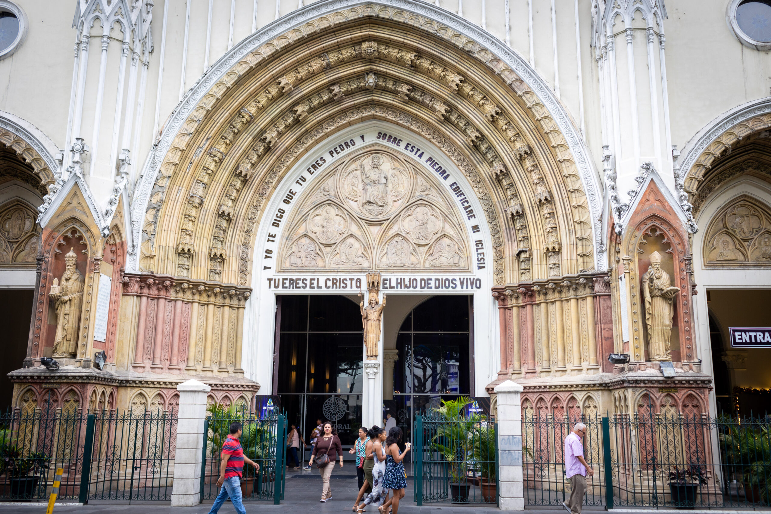 Guayaquil.- Frente al tradicional Parque Seminario se erige la Catedral Metropolitana de Guayaquil, dedicada a San Pedro Apóstol, uno de los lugares más visitados y emblemáticos de la ciudad. Con sus 70 metros de altura, esta edificación fue en su época una de las más altas de la urbe y hoy continúa siendo un referente arquitectónico e histórico.
