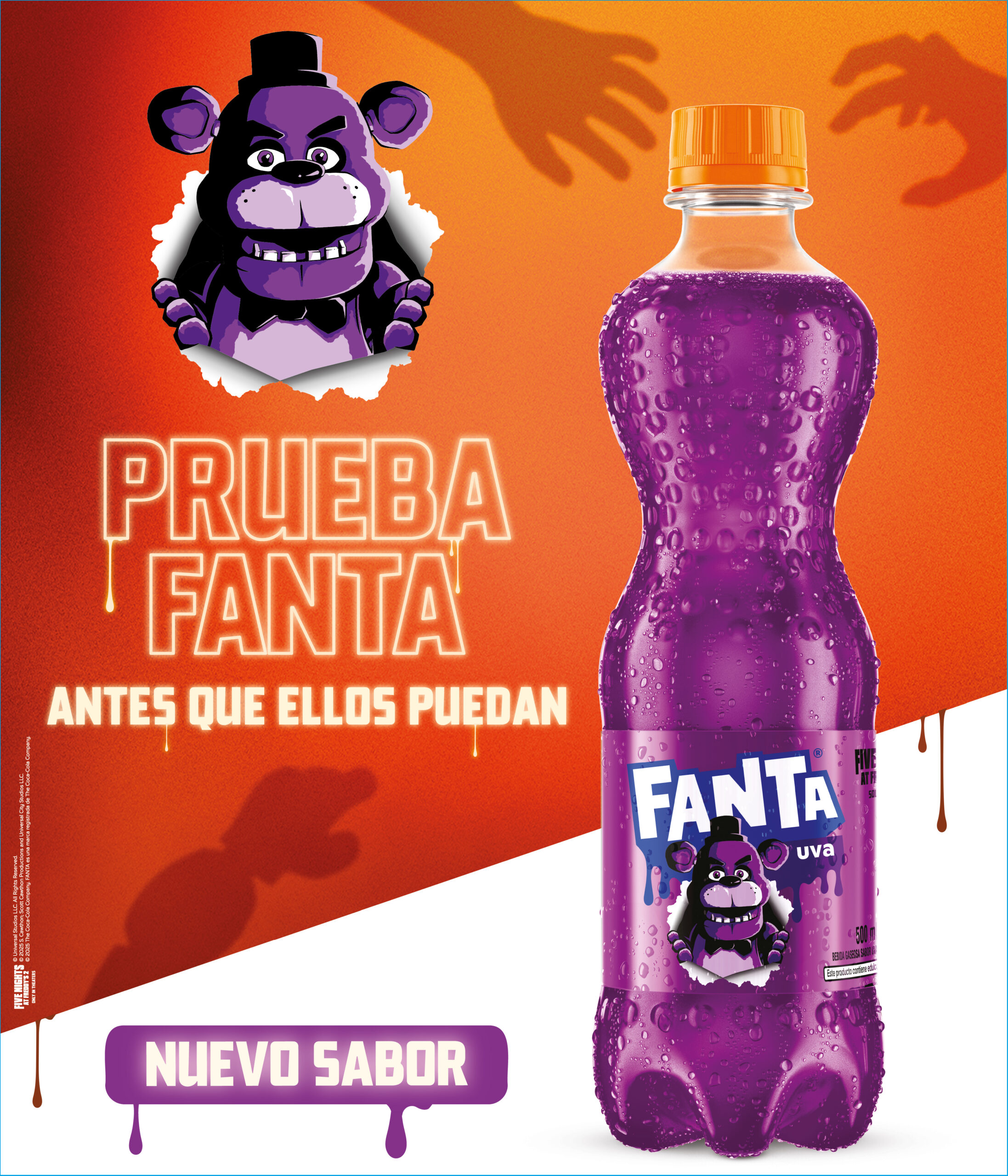 En Ecuador, los consumidores podrán encontrar botellas de Chucky en el sabor Fanta Naranja en los formatos de 250ml, 500ml y 1.35L Pet y a Freddy Fazbear en Fanta® Uva en 500ml y 1.35L. Esta es una oportunidad única para que adquieran esta edición especial y vivan con emoción la temporada más aterradora del año. ¡No dejes que este personaje te robe toda la Fanta!