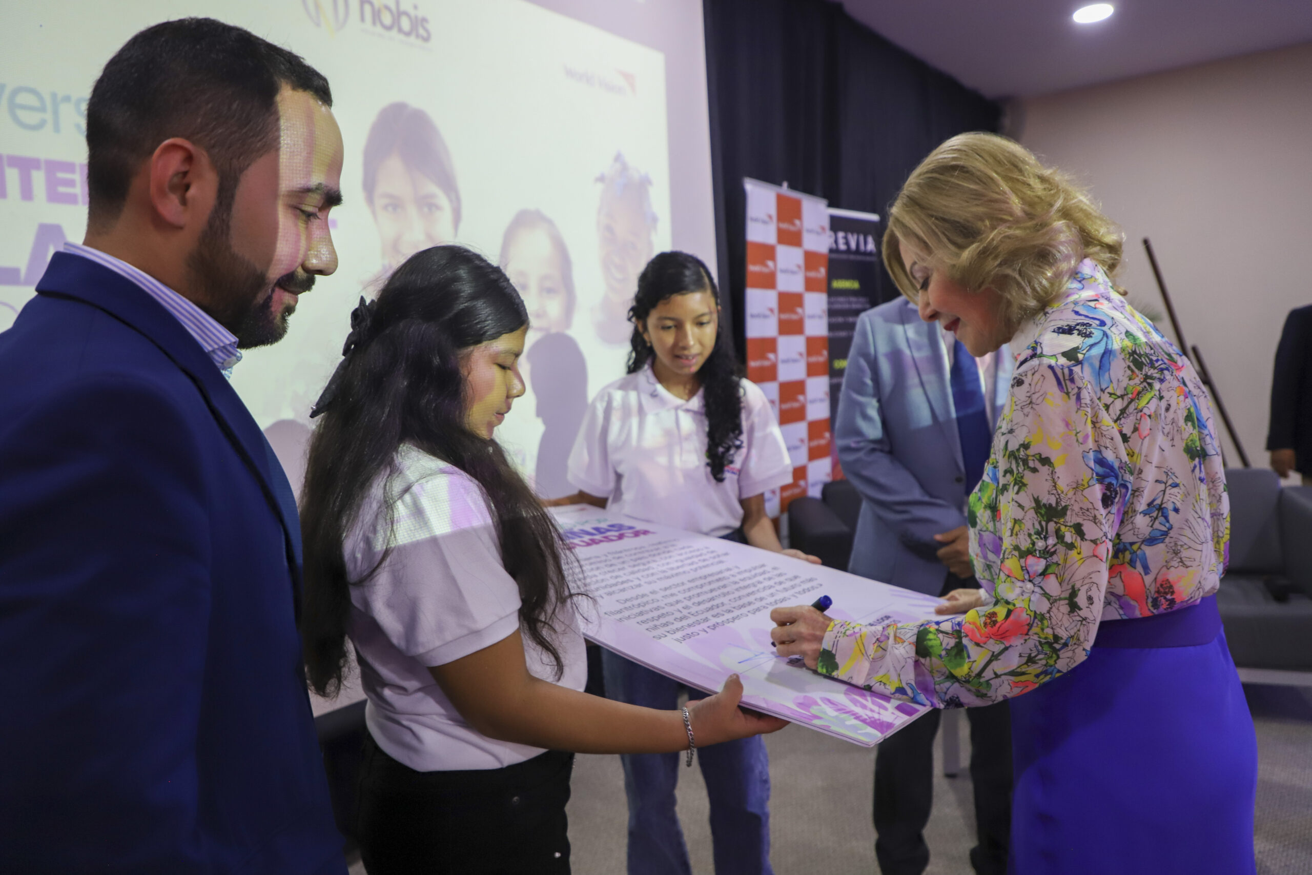 Durante el encuentro, Isabel Noboa, presidenta ejecutiva de Nobis Holding de Inversiones, firmó un compromiso simbólico para seguir impulsando acciones que fortalezcan las oportunidades y la protección de las niñas en el país. Este gesto cobra aún más relevancia si se considera que, en Ecuador, 3 de cada 10 niñas entre 10 y 17 años han vivido algún tipo de violencia y más de 2.000 niñas menores de 14 años fueron madres en 2023, según datos del INEC y el Ministerio de Salud Pública. Estas cifras reflejan una dura realidad que exige acciones urgentes y sostenidas para garantizar los derechos y la protección de la niñez.