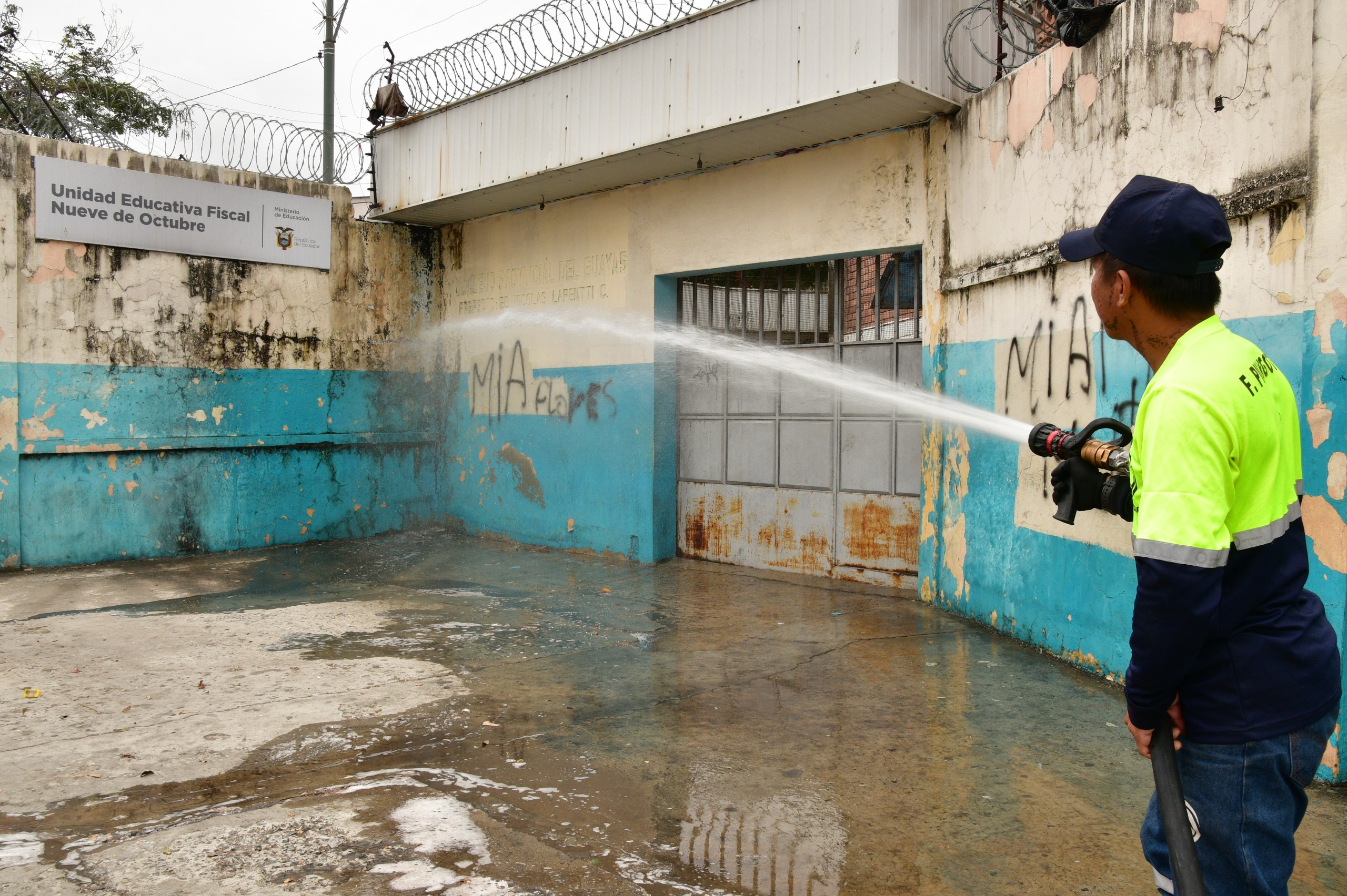 La Dirección de Aseo Cantonal, Mercados y Servicios Especiales (DACMSE) supervisa permanentemente las labores de limpieza, con el objetivo de ofrecer entornos adecuados para los estudiantes y fomentar una cultura de responsabilidad ciudadana.