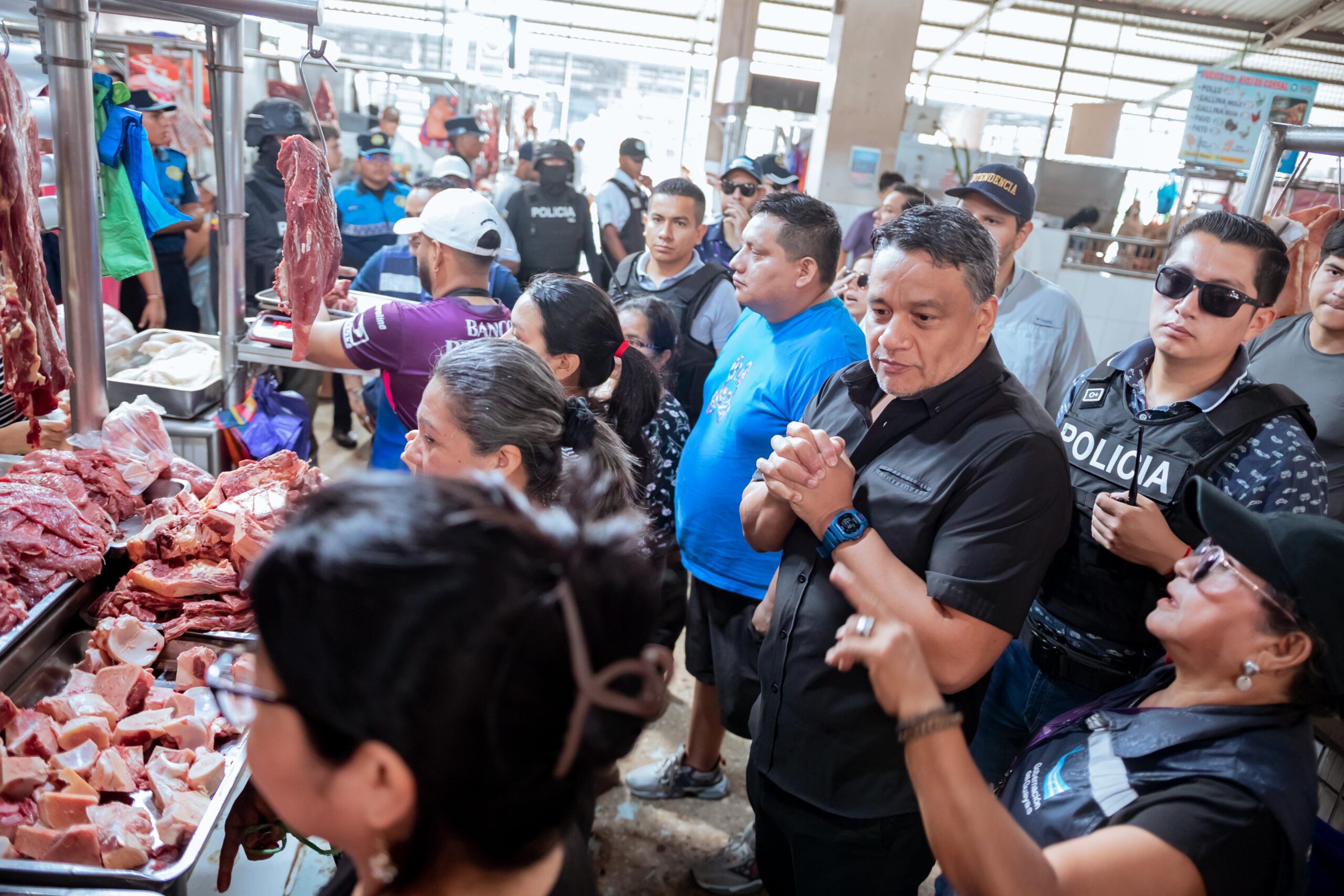Guayaquil.- El Gobernador del Guayas, José Ignacio Arévalo Santana, encabezó este operativo en el Mercado Caraguay, uno de los centros de abastos más grandes del sur de Guayaquil, acompañado por la Policía Nacional, las Fuerzas Armadas y guiado por el Intendente de Policía, Jorge Quintero, la Subintendenta y la Comisaria de Policía.