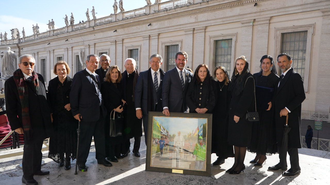 El Papa León XIV bendijo, también, un cuadro pintado por el artista guayaquileño Fabricio Valverde, que representa el Proyecto Social Deportivo más grande del país, a cargo de la Junta de Beneficencia de Guayaquil, en alianza con la Fundación Scholas Occurrentes y el Club Atlético de Madrid, como una iniciativa nacional, sostenible, de lucha por la paz y la erradicación de la violencia.
