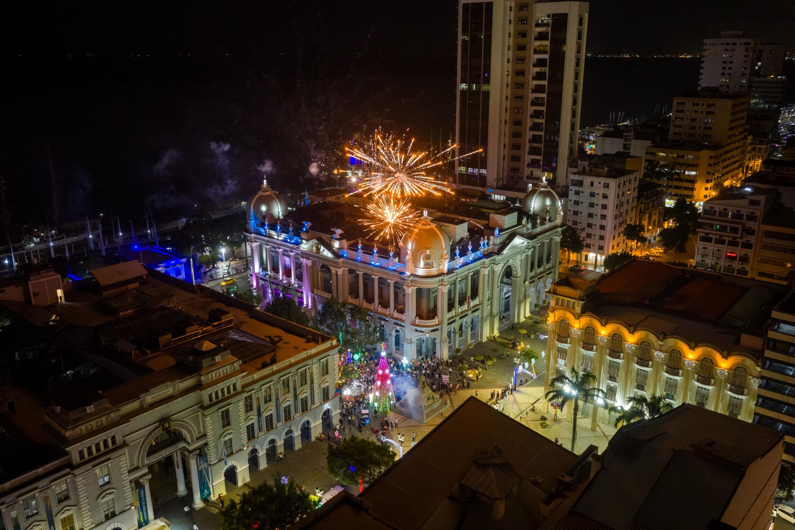 Guayaquil.- La Plaza de la Administración volvió a concentrar miradas la noche del 1 de diciembre con el encendido de su árbol navideño de 12 metros, que transformó este punto emblemático del centro en un escenario de luz y celebración.