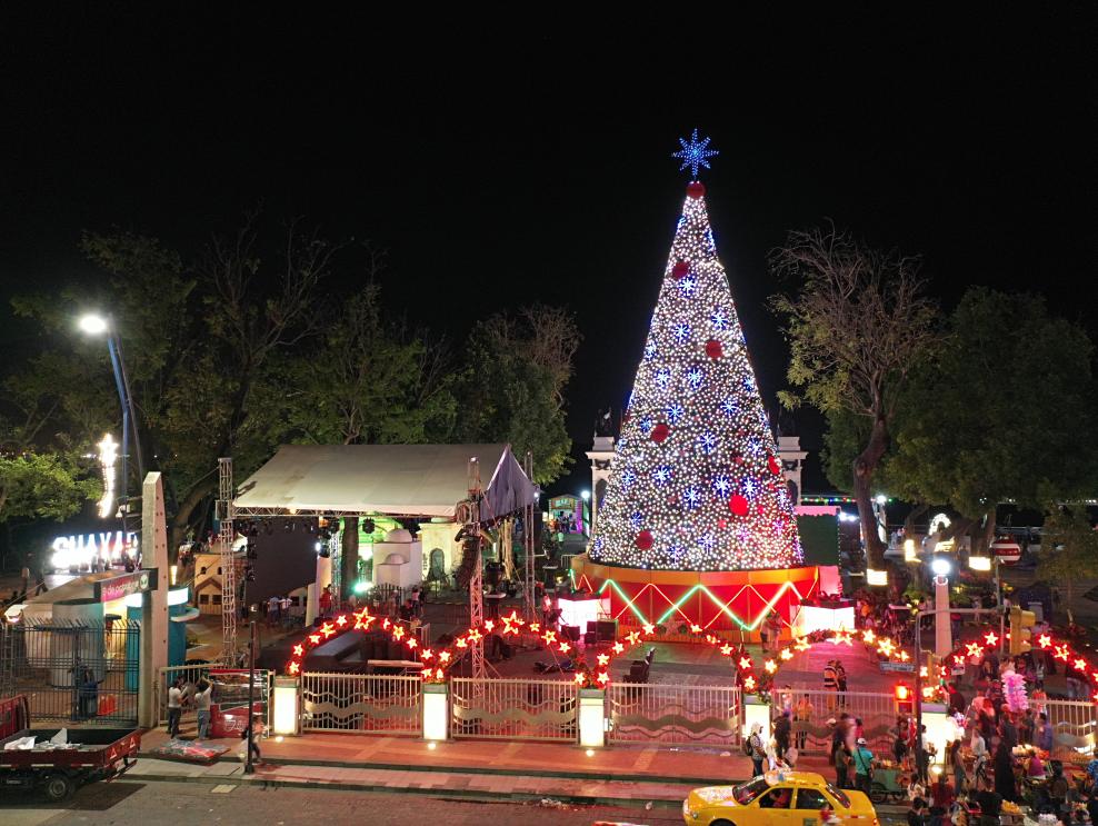 El tradicional árbol de Navidad de Guayaquil, uno de los símbolos más representativos del puerto principal, tiene 12 metros de altura, más de 6.000 luces LED y está coronado por una gran estrella.