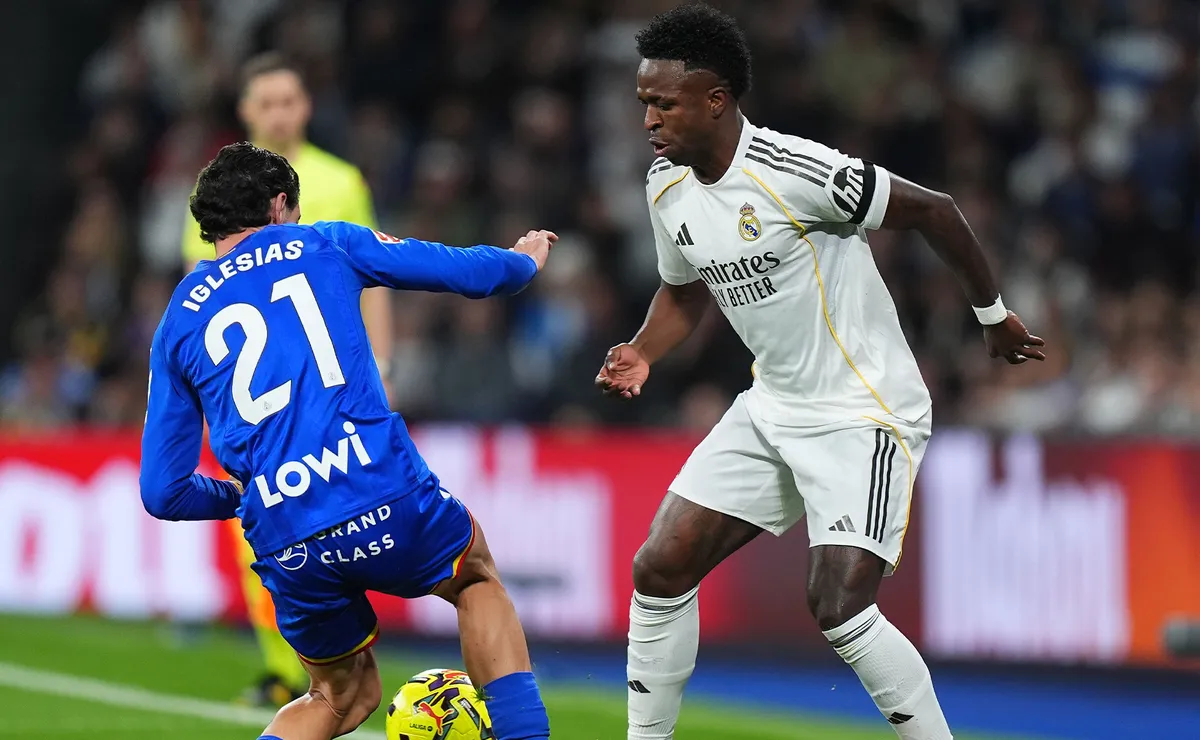 Real Madrid respondió con un par de situaciones notables. Una fue un mano a mano de Vinicius tras un fallido control de Sebastián Boselli. Sin embargo, David Soria brilló en el achique y con la punta de sus botas mandó la pelota al córner.