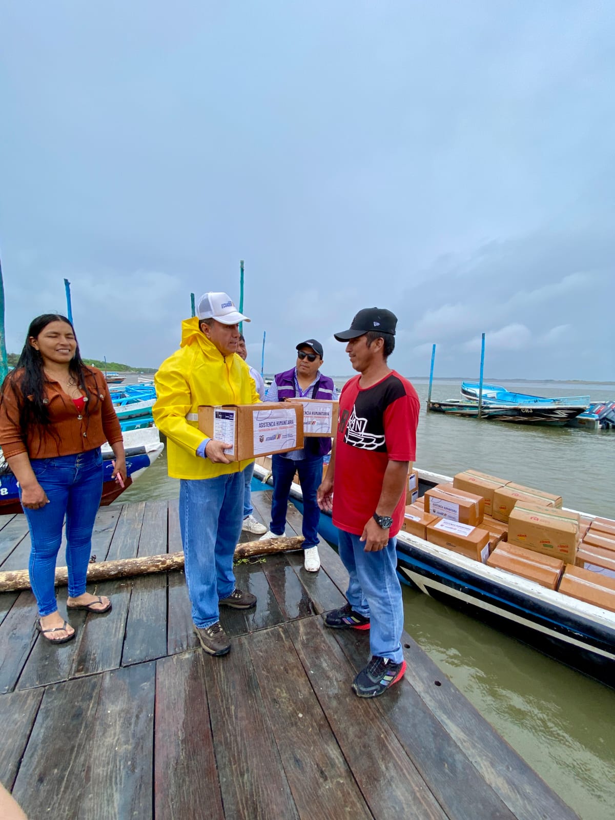 Machala.- En la parroquia Jambelí del cantón Santa Rosa, el Gobernador Jaime Serpa García, en articulación con la Secretaría de Gestión de Riesgos, lideró la entrega de 255 kits de asistencia humanitaria. Esta acción benefició directamente a 255 familias (511 personas) de las islas Bellavista, Costa Rica y Pongalillo, afectadas por la actual temporada invernal.