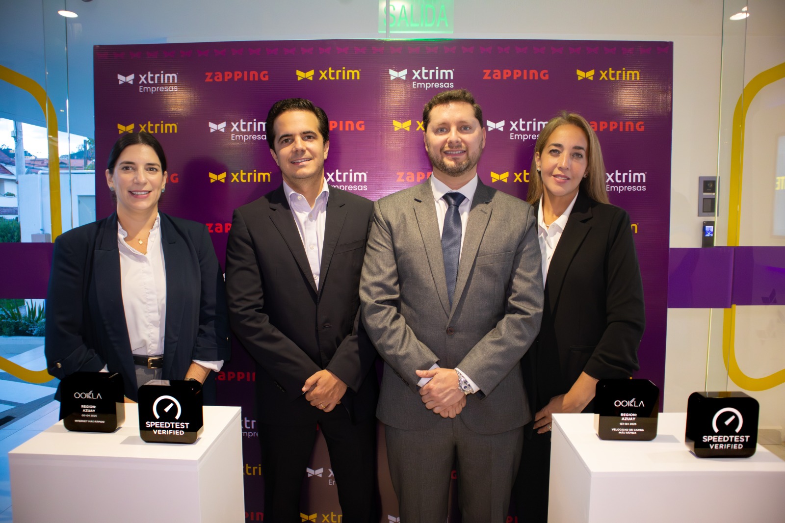 Durante el evento, XTRIM recibió además el reconocimiento de Ookla, firma internacional especializada en medición de velocidad y calidad de internet, que certifica a la compañía como la operadora con la red fija más rápida de Cuenca, basado en datos reales de desempeño como velocidad de descarga, carga y latencia.