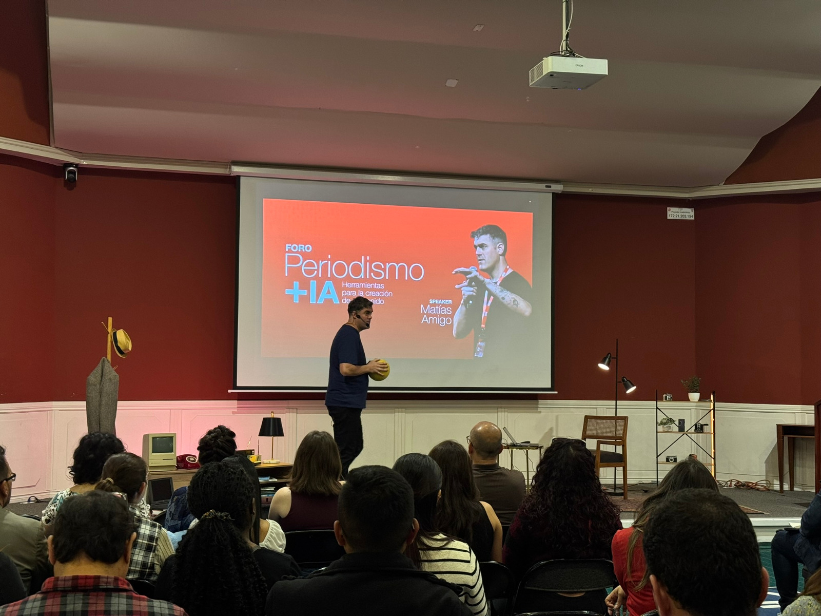 La jornada estuvo liderada por Matías Amigo, comunicador argentino especializado en IA, quien actualmente se desempeña como Trainer en CNN Academy y es creador de Wips, una organización sin fines de lucro que impulsa un espacio de creación y colaboración orientado a garantizar una edición inclusiva y de calidad, a través de la conectividad y las nuevas tecnologías.