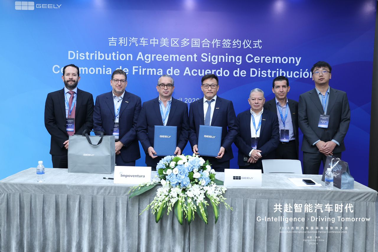 La firma del acuerdo entre Geely e Impoventura se llevó a cabo el 24 de abril en Hangzhou, en las oficinas globales de Geely Auto, en el marco de la Conferencia Global de Distribuidores de la marca. Este espacio reúne a socios estratégicos y representantes de mercados clave para compartir la visión global, avances tecnológicos y planes de expansión de la compañía. La ceremonia contó con la participación de aproximadamente 80 representantes de países como México, Costa Rica, Panamá, República Dominicana y Colombia, consolidando a Ecuador como parte activa de la red internacional de Geely y de su proyección global en la industria automotriz.