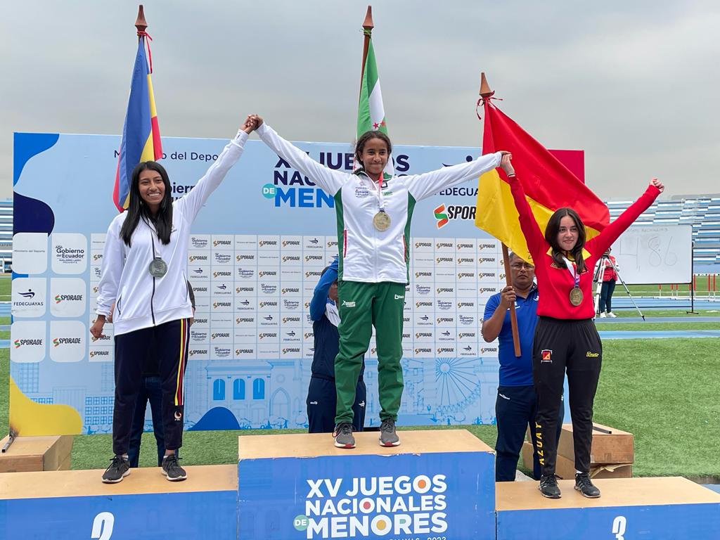 La esmeraldeña Eily Perlaza se convirtió en la mejor en su categoría en el lanzamiento de bala con una distancia de 12,28 m que le permitió acceder al primer lugar, Tiara Caicedo de Guayas marcó 11,36 m y se quedó con la medalla de plata, el bronce fue para María José Hernández de Guayas con 11,20 m.