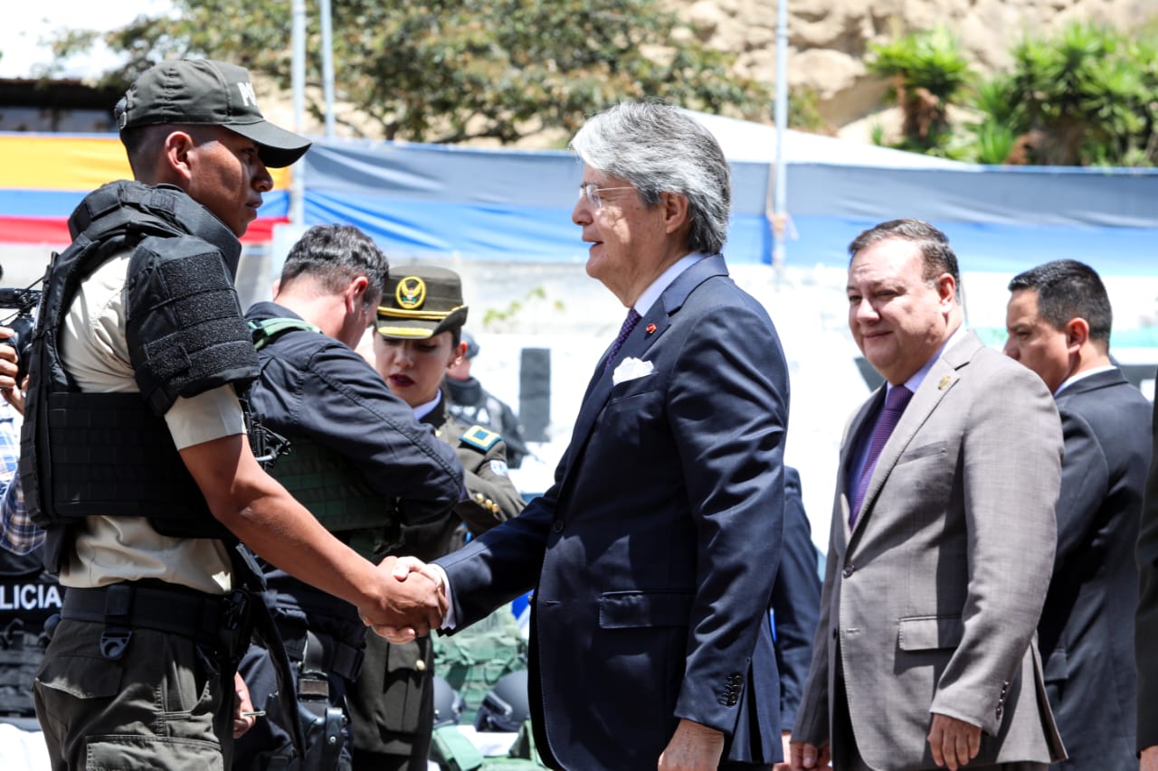 Durante el evento, el Presidente Lasso también entregó el primer lote de 1.100 chalecos tácticos; 232 camionetas para el eje preventivo e investigativo; cinco mil cascos, drones y un equipo antidron para enfrentar, con mayor eficacia, al crimen organizado. De igual manera, resaltó que las acciones de seguridad incautaron 530 toneladas de droga, golpeando a la economía criminal con al menos 20.000 millones de dólares.
