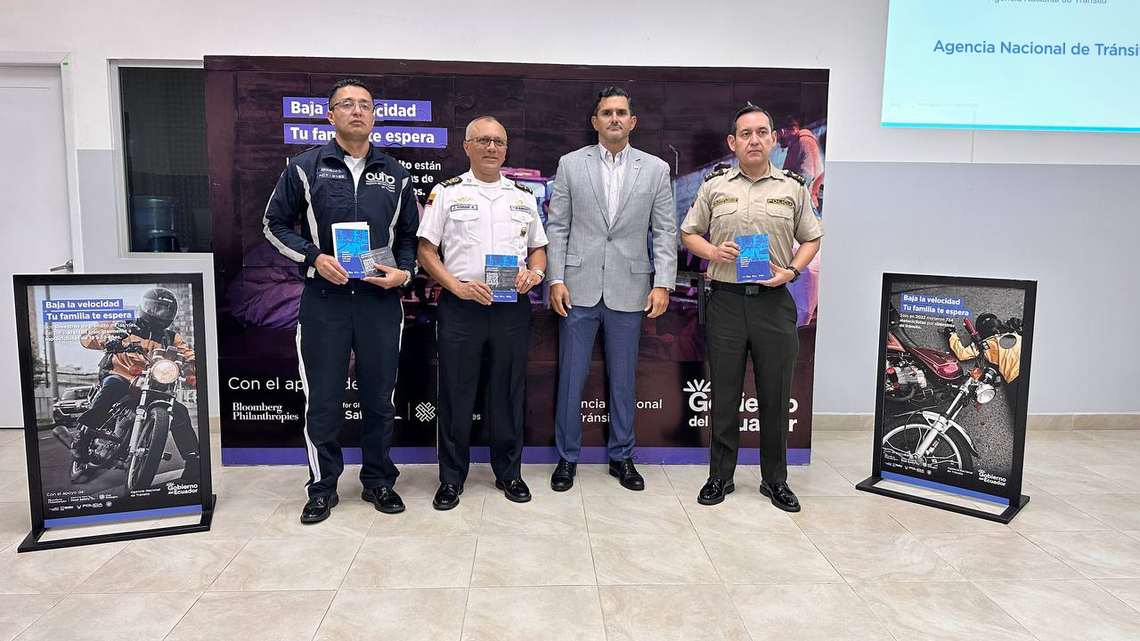 El director ejecutivo, Ernesto Varas, entregó a la PN, CTE y AMT, caballetes informativos de control de tránsito, con la campaña “BAJA LA VELOCIDAD, TU FAMILIA TE ESPERA”, con el fin de sembrar conciencia en la ciudadanía y reforzar los operativos preventivos de control en las vías.