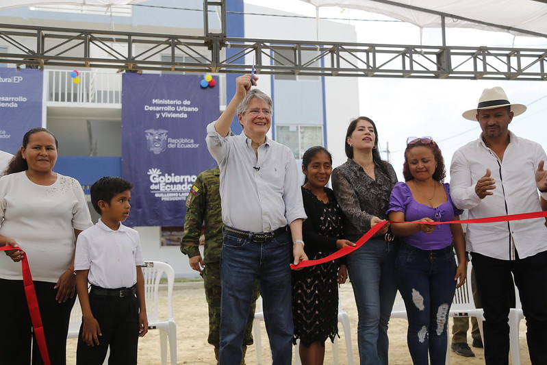 Naranjal.- Familias de los cantones de Naranjal, Ventanas y Chimbo recibieron hoy sus casas nuevas y 100 % gratuitas. Son 503 viviendas que beneficiarán a 2.033 ciudadanos y que fueron inauguradas por el Presidente Guillermo Lasso, desde Naranjal: “Una vivienda no