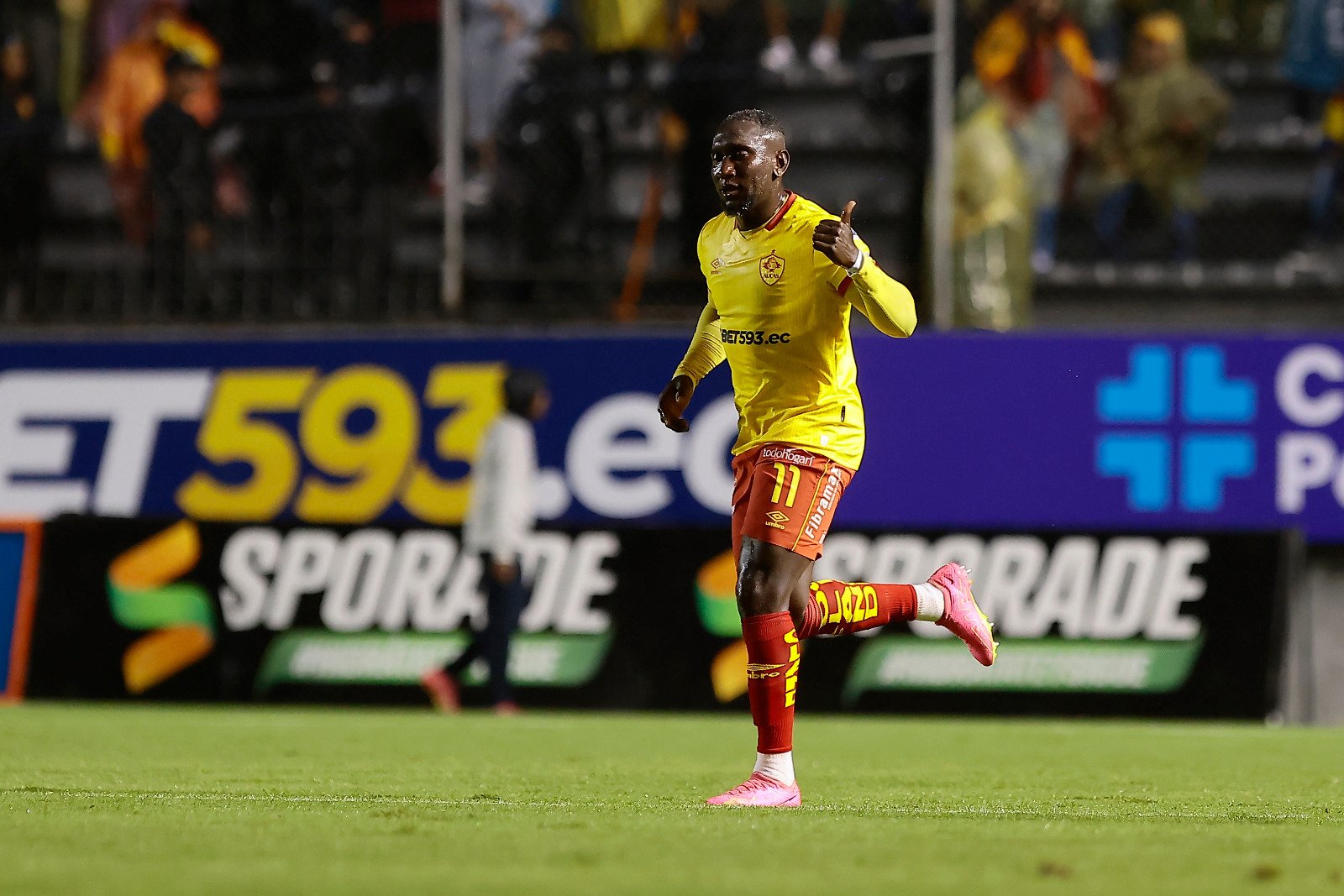 A minuto seguido, Sornoza cobra un tiro de esquina donde cabecea Michael Hoyos pero la pelota pega en el horizontal y se salva Aucas del descuento.